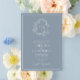 Formal Dusty Blue Leafy Crest Monogram Wedding Invitation