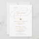 Stylish calligraphy script gold white senior high school, college or university graduate photo graduation party invitation template with a grad hat. ++++++++++++ Easy to personalize with your custom photo, the graduate's name, graduation year, school name, and graduation party details!