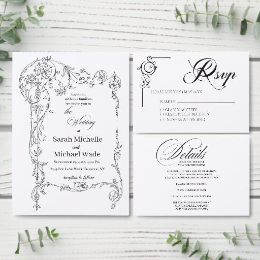 Floral Frame Calligraphy Wedding invitation suiteDesigned by Phyllis Waugh