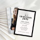 This elegant, classic black and white graduation invitation features a sophisticated, minimalist layout designed to honor a significant academic milestone achievement. A photo of the grad goes onto the back. With clean typography and an understated, timeless style, it’s ideal for celebrating an accomplished adult graduate with an advanced degree. Perfect for reception-style celebrations, formal graduation parties, or elegant hosted events and evening gatherings.