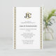 A chic, elegant and stylish minimalistic design of faux 3D celtic gold chains which edge the left and right side of the invitation which has the grooms monograms at the top with a bold and medium density font below for your custom wording to guests.