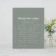 This formal green would she rather bridal shower game is perfect for a classic bridal shower celebration. The design features a beautiful font in a green background to embellish your event.