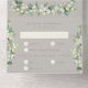 A combined wedding invitation and response card (with meal options). Featuring hand painted snowberries and stems of eucalyptus arranged into beautiful botanical elements and frame against a greige background. All text is fully editable, and the scattered dots on the front and back can be deleted before ordering if you would prefer. Please view this Collection in my store for versions of this product with alternative wording options, in different colours and for coordinating items.