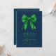 Formal Holiday Dinner Party Green Satin Bow Navy Invitation