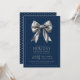 Formal Holiday Dinner Party Silver Satin Bow Navy Invitation