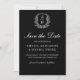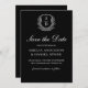 Formal Leafy Crest Monogram Black White Wedding Save The Date