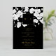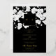 Branches of white orchids, hand-drawn in graphite pencil, intertwine in this simple but sophisticated, elegant yet chic, monogram wedding invitation. The branches of orchids form a stylish floral wreath that looks formal but modern. A contemporary classic design for black tie weddings with an organic, natural feel. It features elegant script calligraphy and real foil, on a black background.