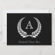 Custom initial monogram inside the white silhouette laurel wreath crown. Formal black and white personalized graduation announcement for college or any level. Classic black background with shape of laurel leaves and fancy and elegant single letter initial.