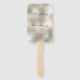 Elegant wedding ceremony or program hand fans in a more formal style featuring a classic layout of gold frames and text with an ornate paisley background in shimmering champagne beige. Add your ceremony or wedding party details using the provided template. Search ID767 to see other colour choices for this design.