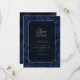 Elegant wedding Save the Date card in a more formal style featuring a classic layout of gold frames and text with an ornate paisley border. This example adds a modern touch with it's background in shimmery navy blue. Add your event details in a serif font for it's traditional appeal. Search ID767 to see other color choices for this design.