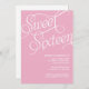 This pink sweet 16 invitation is embellished with white formal lettering.