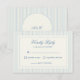 A formal and elegant RSVP card featuring preppy blue stripes as a background and elegant, timeless typography.