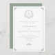 Make a lasting impression with our Formal Sage Green Crest Monogram Wedding Invitation, featuring an elegant monogram crest with the couple's initials surrounded by soft floral accents. This modern yet classic design in serene sage green, paired with refined typography, offers a timeless and sophisticated look easily personalised to your vision. I'm here to assist with any customisations you may need.