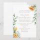 Formal Sunflowers & Greenery Wedding Invitation. Bride Parents Listed. Gold text.