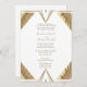 Formal Wedding Invitation. Both Sets of Parents Listed. Art Deco Gold frame and white background. Gold text.