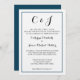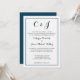 This formal standard wedding invitation wording for weddings hosted by the parents of the bride. It is a simple white invitation with a blue border and back.