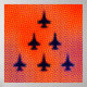 Formation of F16s in Orange Pop Art. Inspired by some of Andy 's work such as "Car Crash in Orange" Design has large half-tone dot effect in order to give the design a Pop Art Silkscreen printed effect. The over all colour is Orange and the planes are dark blue, although the design also includes dots in magenta, yellow and black. Showing through from other layers in the original design.