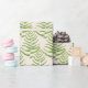 The design on this product is based on two paintings by me of Fern and Strawberry leaves. While the Fern leaf is flat with a complex geometry, the Strawberry leaves are sculptural in form with jagged edges and clubbed together boldly. When put together, the delicacy of Fern and the boldness of Strawberry leaves create a beautiful contrast. This design is ideal for winter weary eyes!
