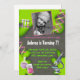 Fun, colourful design for science or mad-scientist themed parties. Green slime, beakers, test tubes, and molecular symbols in the background. Eureka!
