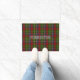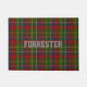 Traditional blue, green, yellow, grey, and red Scottish clan Forrester tartan plaid door mat, with grey bold ready to personalise. Great gift idea.
