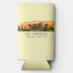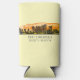 Seltzer can cooler featuring Fort Lauderdale city skyline silhouette with latitude and longitude coordinates and sunset watercolor