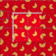 Vibrant red fabric printed with lucky Chinese fortune cookies