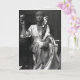 Text says, “Mat you have your best year ever. Happy Birthday “ The image is of a woman dressed 1920’s style, Art Nouveau, seated in a tall backed throne chair, holding a seashell. Her head is wrapped in a 1920’s turban. Her dress is silk. The colors are silver tone. She looks like a mysterious fortune teller predicting birthday wishes.