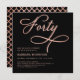 Forty Black Rose Gold Script 40th Birthday Invitation