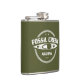 The flask itself is fine. It’s a cheap flask, obviously bought in bulk, however am prepared to overlook that. Given that it is a personalized item, I would have liked to have seen gift boxing instead of the generic packaging. Terrible printing, and/or quality. It’s a cheap, tacky vinyl. It is not cut straight and is also applied in a way that it is overhanging the bottom, causing the glue to catch on items and it will eventually roll and tear, damaging the wrap.