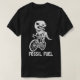 Funny dinosaur fossil riding a bicycle.
