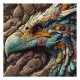 A portrait of an ancient extinct bird of prey in the rocks, created in embossed style with hues like turquoise, deep yellow, orange, and blue, with rocks in the background, with a realistic open-eye effect adds a magical touch to this enchanting and colourful artwork.