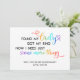 Will you be my bridesmaid card for a lesbian wedding with found my lady, got my ring, now I need just one more thing in a black and rainbow coloured typography design. Personalise with a photo!