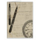 Looks like someone was taking a lot of notes! This contemporary painting of fountain pens and a watchface illustrate the loss of time to the various mundane, but important, activities in our lives. Get your copy today!