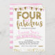 Four and Fabulous Girls Pink & Gold 4th Birthday Invitation