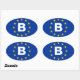FOUR Belgium "B" European Union Flag Oval Stickers. Belgium's International Vehicle Registration Code with EU Flag in the Background