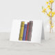 Whether you are a bookworm yourself or know someone who likes to read this is the perfect design. This design features four books standing up next to each other with the spines of the books showing. Each book is a different height and colour. This four books design looks great on these greeting cards
