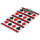 Set of card suit icons isolated on black, red and white striped background