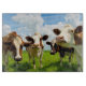 Four chatting cows interrupted in their daily chit chat by the photographer. Standing on the meadow on a beautiful summer day with a great cloudscape on the background. Photo taken in Friesland, the home of the Frisian cows. So consider them as aliens in the cow community of the Frisians But they are nice looking ladies!