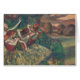 Edgar Degas studied his preferred subject, ballet performers, in hundreds of works. Four Dancers, one of the largest and most ambitious of his late works, exists in several variants that show different kinds and degrees of modification. While Degas suppressed descriptive detail elsewhere in the painting, emphatic dark lines shape the heads and arms, underlining the artist's formal concerns. Theatrical lighting over the off–stage performers recolors the figures and creates a simple colour scheme of complementary red–orange and green hues.
