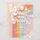 Four Ever Groovy Daisy Rainbow Groovy 4th Birthday Invitation