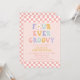 Four Ever Groovy Retro inspired 4th birthday invitation with 70's style fonts and daisies and chequered pattern.