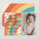 Four Ever Groovy Retro Rainbow 4th Birthday Photo Invitation