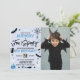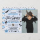 These fun and stylish invitations are perfect for anyone celebrating a 4th birthday this Halloween. The design features everything spooky from a black cat with flying bats to a spider's cobweb, ghosts, a witches broomstick, skull & bone, magic glass ball and a jack-o-lantern pumpkin all in black, white and shades of blue colours. The template photo and wording is easy to personalise and your party guests will be in for a scare when they receive these invites in the mail!