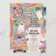 Retro Four Ever Spooky Halloween 4th Birthday Party Invitation - Let's get Groovy! Design features a colourful background with a boho rainbow. Cool retro illustrations decorate the simple template with adorable hippie ghosts, skull flowers, spooky disco ball and spooktacular candy.