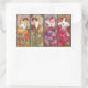 Four beautiful Mucha paintings each a different coloured floral colour. Orange, purple, red and green