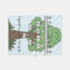Four generations of your family tree are featured on this blanket. The names and the oval photos are set up as templates that should be changed to the names and photos of your own family members. The background features a green and brown tree drawing on light blue.