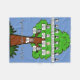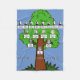 Four generations of your family tree are featured on this blanket. The names and the photos are set up as templates that should be changed to the names and photos of your own family members. The background features a green and brown tree drawing on a blue background.