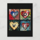 Art by Marta Harvey. Each square is a collage on wood of different painted papers, speciality papers, and painted canvas. There is a lot of colour and texture, which I hope you can see and enjoy. The letters were added digitally (the original actually had the word "love" on each of the hearts).