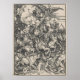 Four Horsemen of the Apocalypse by Albrecht Durer, 1497-1498, is a woodcut print depicting the White, Black, Red and Pale horses with riders from the Bible’s Book of Revelations by Saint John. Durer’s fierce, macaber horsemen, instruments of Divine judgment, rush furiously forth across earth, sky and clouds, trampling kings and common folk alike underfoot as a winged angel flies overhead. This early woodcut was among the widely disseminated prints which secured Durer’s reputation as one of the greatest artists of his day.