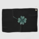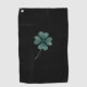 Four Leaf Clover Green On Black Watercolor Golf Towel